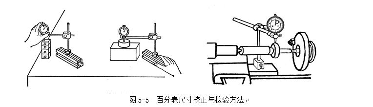 1 用百分表或千分表測量零件時,測量桿必須垂直于被測量表面。圖5-4所示。即使測量桿的軸線與被測量尺寸的方向一致,否則將使測量桿活動不靈活或使測量結果不準確。