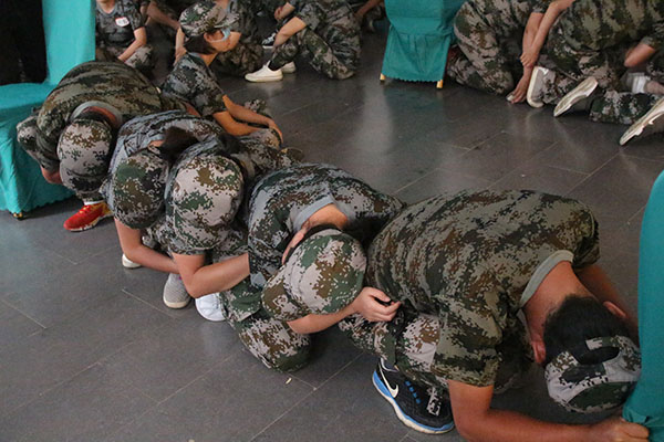眾志成城”。所有隊員在最短的時間內(nèi)完成任務,同時坐下,同時起立。