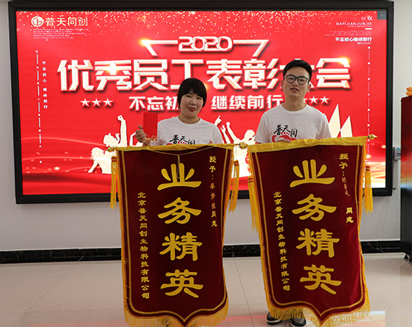 ?2020年7月6日,普天同創(chuàng)舉行6月優(yōu)秀員工表彰大會。總經(jīng)理岳維、業(yè)務(wù)經(jīng)理周麗為6月業(yè)務(wù)標兵秦夢雅、胡雪成頒發(fā)榮譽錦旗和獎金。希望他們在今后的工作中再接再厲、全力以赴、爭創(chuàng)佳績;也希望其他員工以他們?yōu)榘駱樱瑢W(xué)習(xí)他們工作精神、工作態(tài)度,能夠在次月中加入他們,獲得自己的榮譽。