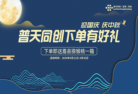 賀中秋迎國慶。2020年國慶·中秋雙節(jié)到來之際,普天同創(chuàng)向所有新老客戶提前送上最誠摯的佳節(jié)祝福,將開啟下單有禮活動。活動時間為:2020年9月21日—9月30日。