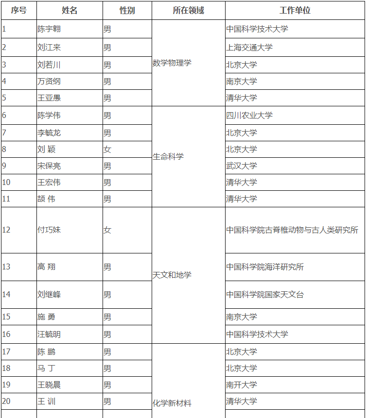 根據(jù)名單我們可發(fā)現(xiàn),此次獲獎?wù)呓^大多數(shù)來自17所高校,如北京大學(xué)、清華大學(xué)、上海交通大學(xué)、浙江大學(xué)、中科大、南京大學(xué)、武漢大學(xué)、華中科技大學(xué)、東南大學(xué)、廈門大學(xué)、西南交通大學(xué)等;9名獲獎?wù)邅碜韵嚓P(guān)研究所,還有一名來自中國石油化工股份有限公司。